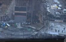 Militia officers pelt protesters with stones at Hrushevskogo Street