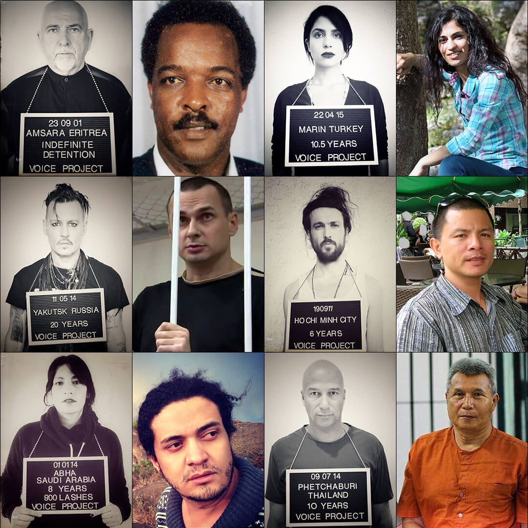Each artist is paired with a currently imprisoned counterpart, whose arrest information is displayed on a traditional mugshot police board, according to The Voice Project.