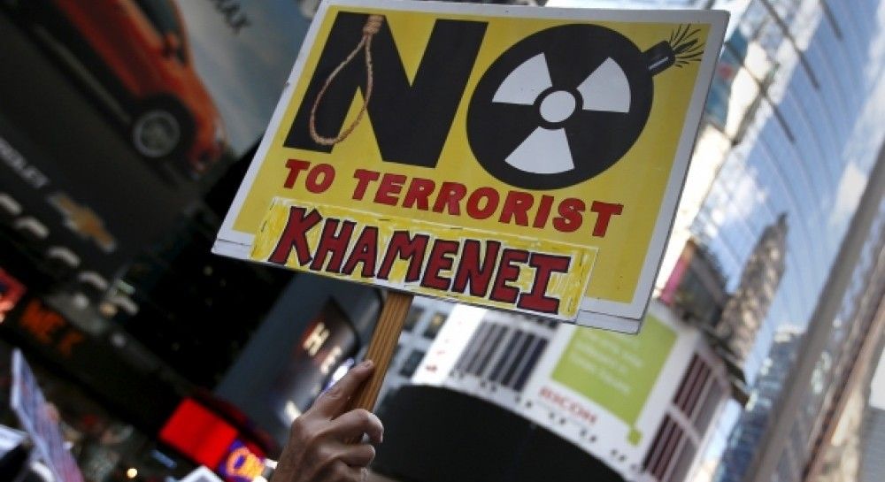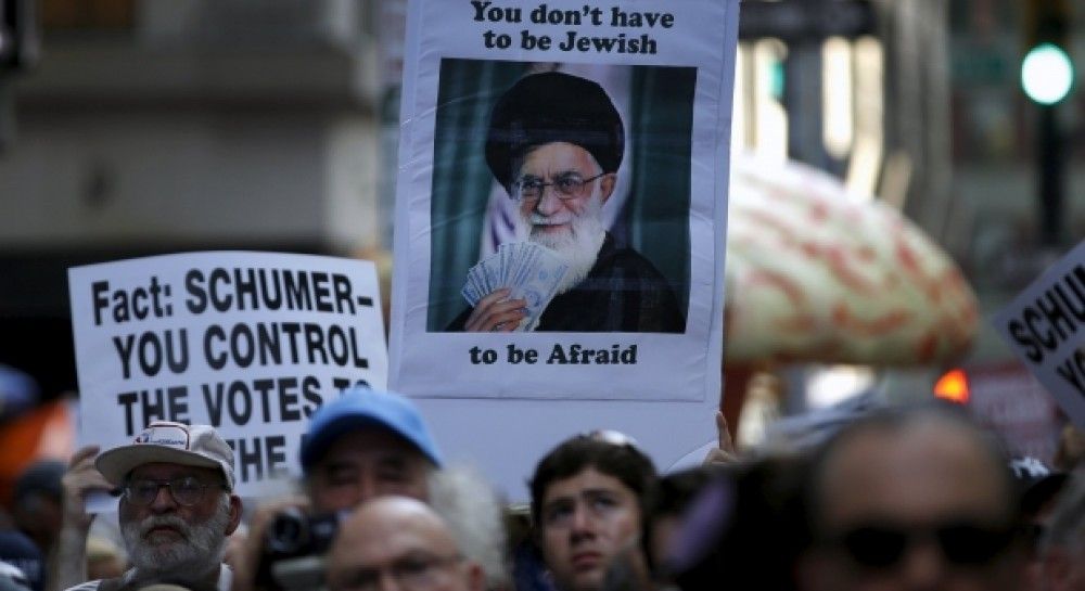About 10,000 people came to protest and demanded "to break the agreement," as well as urged the U.S. Congress to vote against the nuclear deal with Iran.